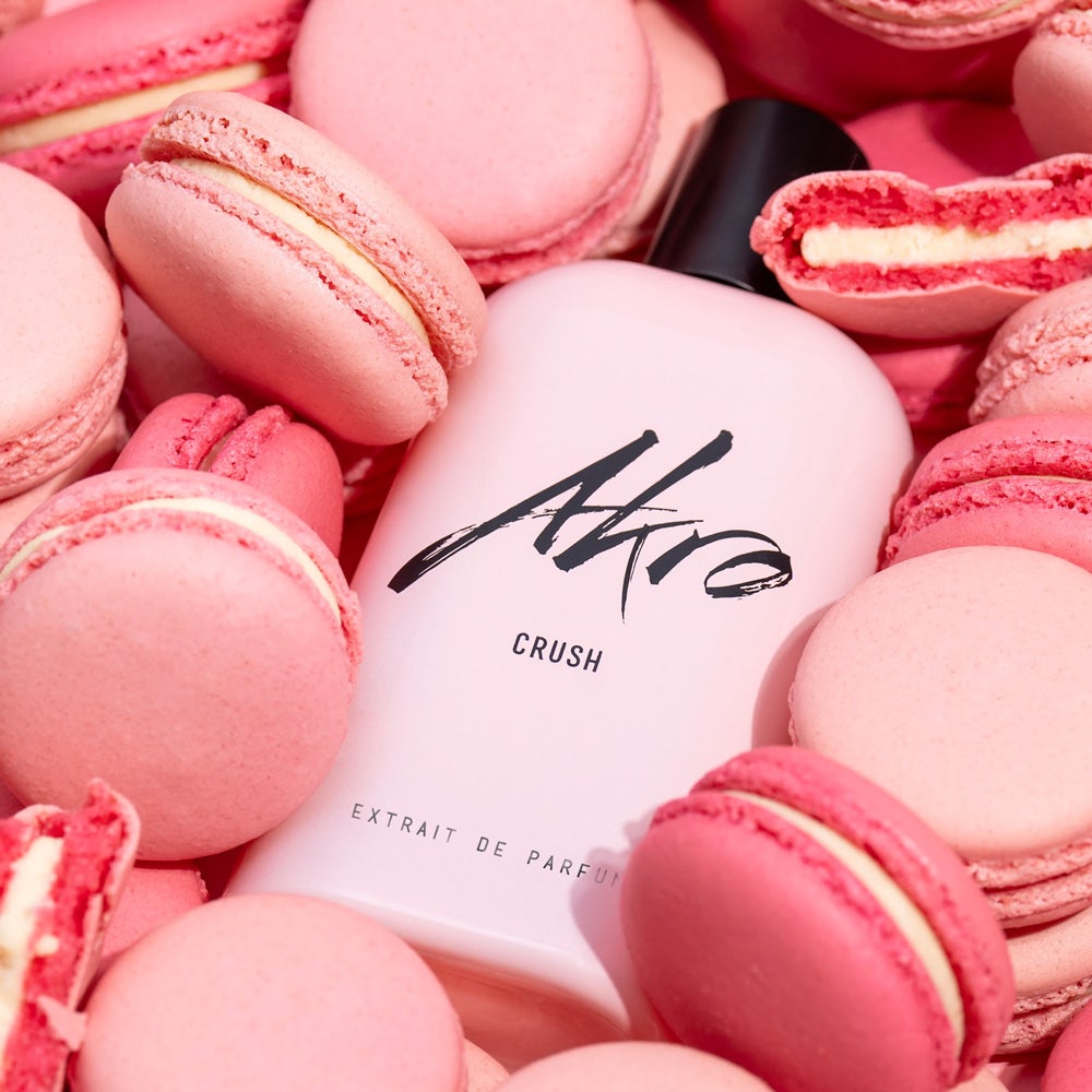 Akro Crush è un estratto di profumo che cattura l'essenza delicata dei macaron alla rosa. Un'armonia affascinante tra contrasti: le note iniziali di litchi e mandorla tostata evocano la croccantezza del guscio, mentre il cuore rivela la morbidezza della rosa bulgara e il pralinato di nocciola.