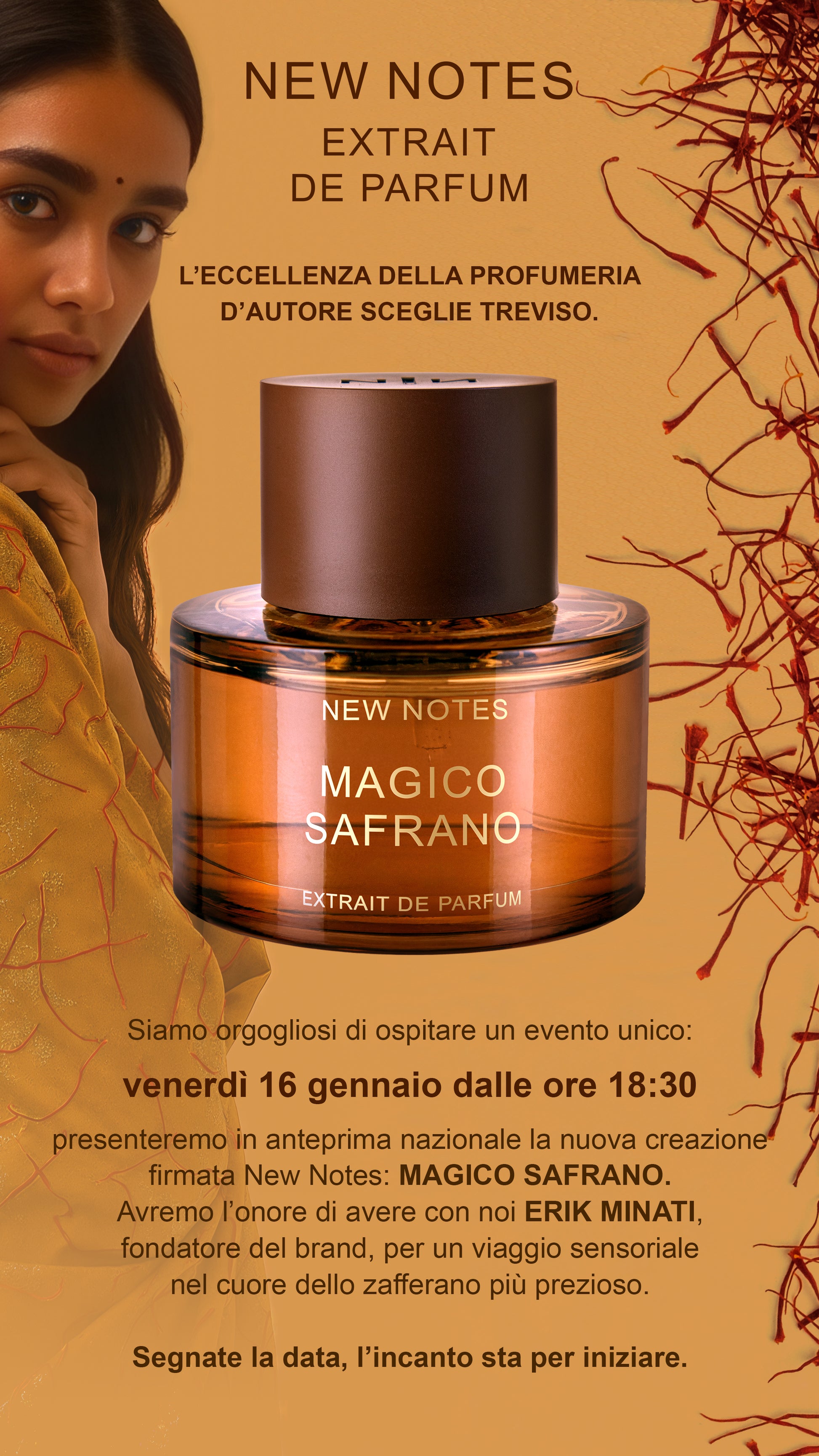 NEW NOTES - IL FONDATORE ERIK MINATI PRESENTERÀ LA SUA ULTIMA CREAZIONE MAGICO SAFRANO - VENERDÌ 16 GENNAIO 2026 DALLE ORE 18:30